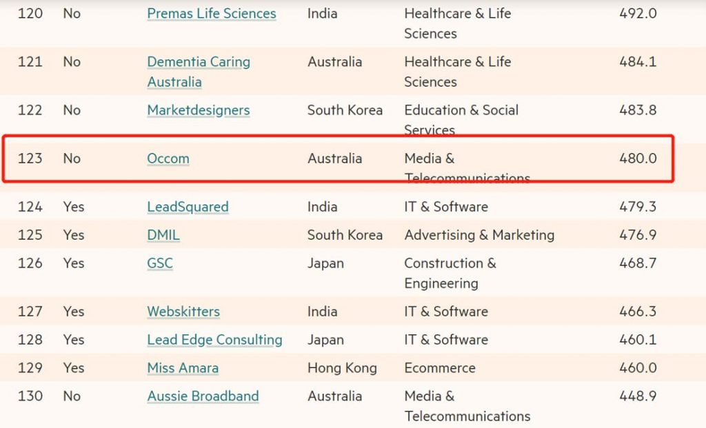 英国《金融时报》(Financial Times)3月15日权威发布了《2023年亚太地区高增长企业》(High-Growth Companies Asia-Pacific )500强。澳世网络成绩斐然,以79.7%的复合增长率荣耀入选,名列全亚太区第123名,全澳第23名。澳洲电信行业本次只有4家公司入榜,澳世网络Occom名列第2!